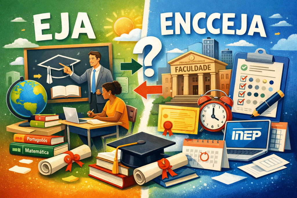 EJA, ENCCEJA são duas das principais alternativas para quem não concluiu o ensino fundamental ou médio na idade regular. Muitas