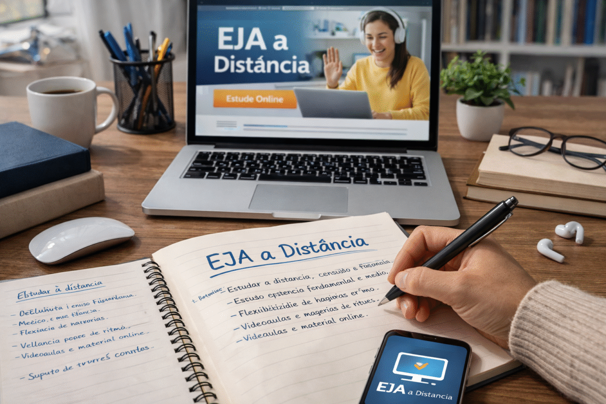 A EJA online reconhecida pelo MEC oferece flexibilidade para estudar sem sair de casa, com diploma de validade nacional. Você pode conciliar trabalho, família e estudos, com recursos como videoaulas, exercícios práticos e feedback rápido. Conteúdos atualizados, alinhados ao formato a distância, ajudam a avançar sem calendário rígido.